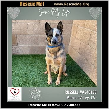 Read more »25-09-17-00223D011URGENT AFTER 08/20 (m)(male)Australian Cattle Dog mixRiverside County, Moreno Valley, CAID: A546138